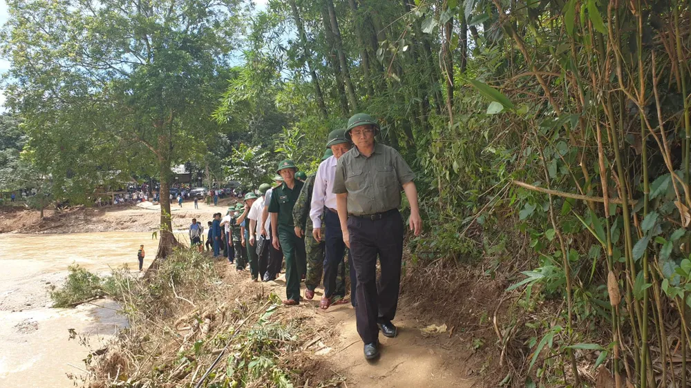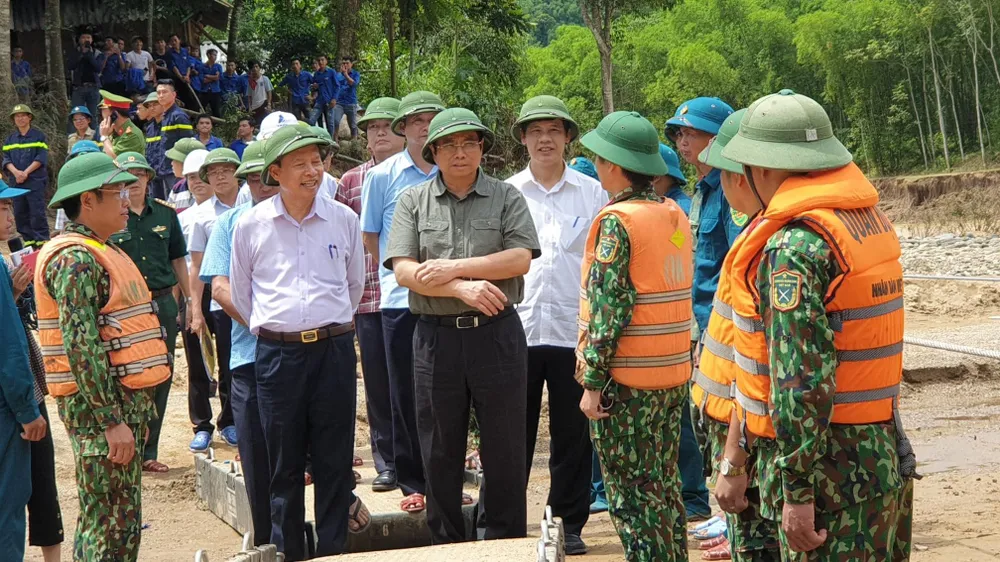 Ông Phạm Minh Chính cùng đoàn công tác thăm hỏi lực lượng cứu nạn.