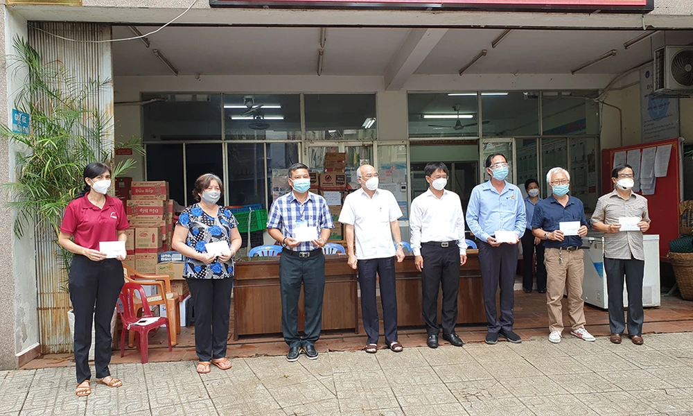 Lãnh đạo Ban Tuyên giáo Thành ủy TP.HCM gửi lời thăm hỏi, động viên đến các Khu phố trưởng, Tổ dân phố... vì đã đóng góp nhiều công sức trong công tác phòng chống dịch bệnh. Ảnh: NT