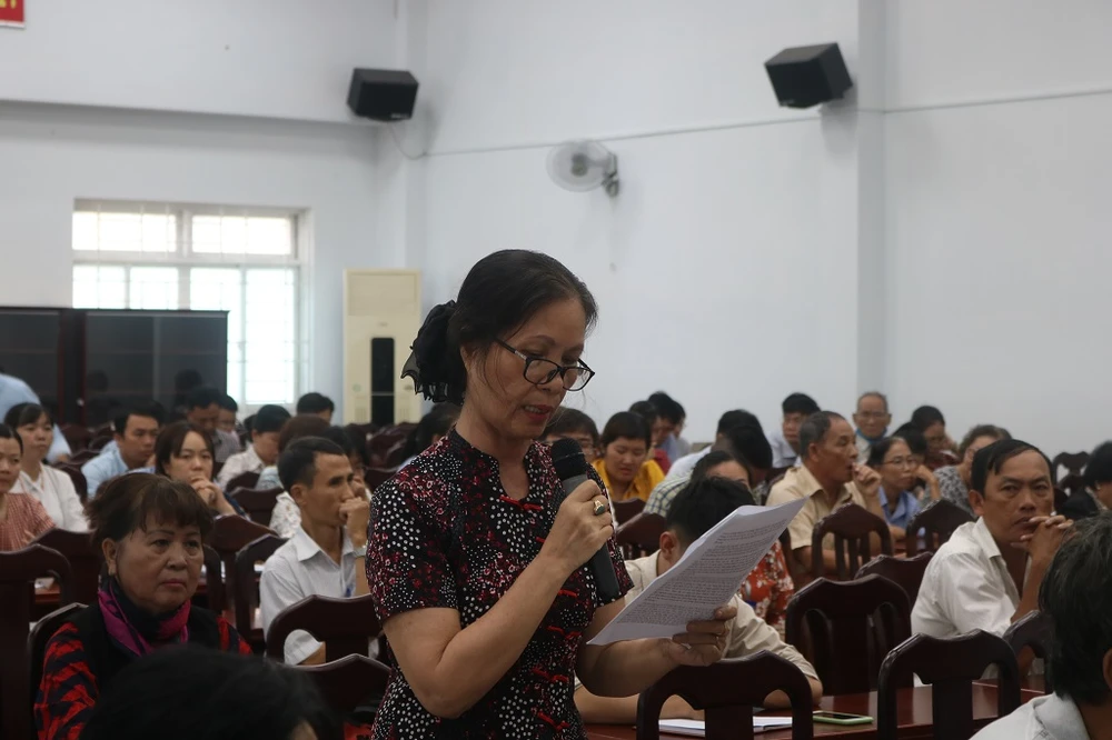 Cử tri phát biểu ý kiến tại buổi tiếp xúc. Ảnh: THANH TUYỀN