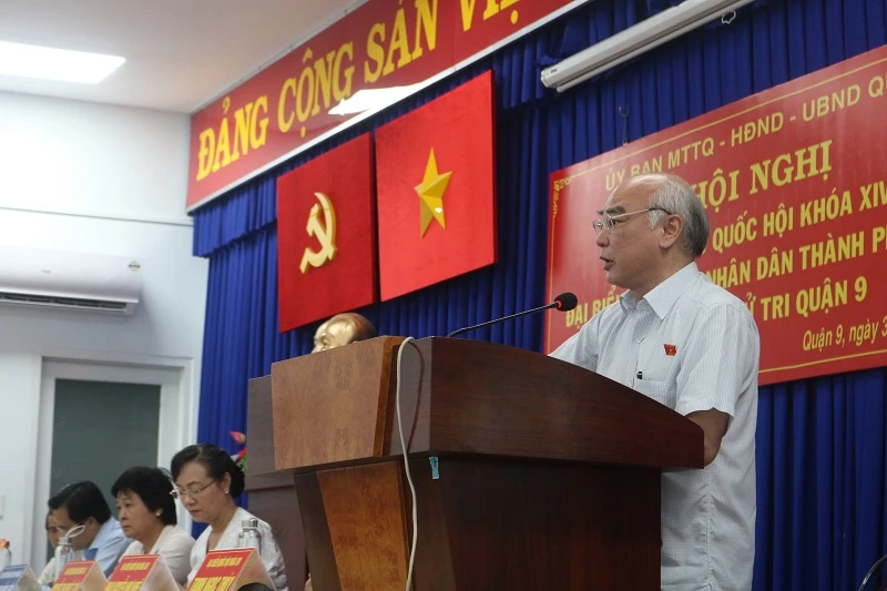 Chiều 30-6, các đại biểu Quốc hội đơn vị 7 đoàn đại biểu Quốc hội TP.HCM gồm ông Phan Nguyễn Như Khuê, Trưởng ban Tuyên giáo Thành uỷ TP.HCM; bà Nguyễn Thị Quyết Tâm, nguyên Chủ tịch HĐND TP.HCM và bà Trịnh Ngọc Thuý, Phó Chánh án TAND TP.HCM đã tiếp xúc với cử tri quận 9.