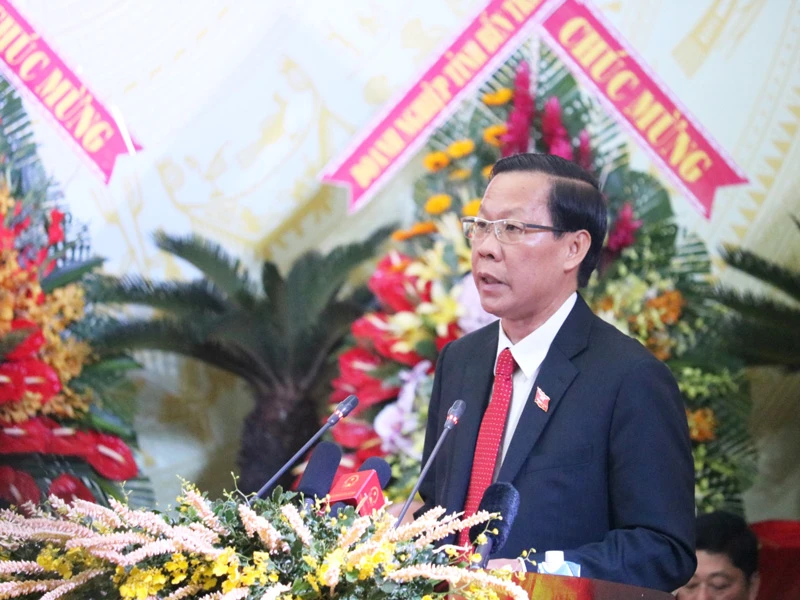 Ông Phan Văn Mãi phát biểu tại Đại hội. Ảnh: Đ.H