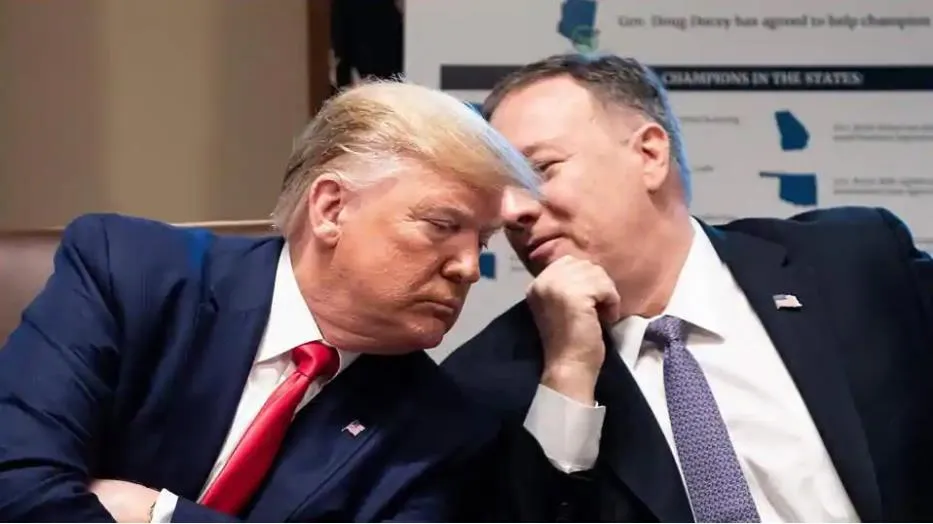 Ngoại trưởng Mỹ Mike Pompeo (phải) trao đổi với Tổng thống Donald Trump. Ảnh: AFP