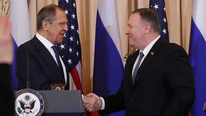 Ngoại trưởng Nga Sergei Lavrov (trái) và người đồng cấp Mỹ Mike Pompeo họp báo chung sau cuộc gặp ở Washington (Mỹ) năm 2019. Ảnh: Jonathan Ernst/REUTERS