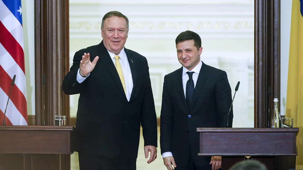 Ngoại trưởng Mỹ Mike Pompeo (trái) và Tổng thống Ukraine Volodymyr Zelenskiy. Ảnh: TASS