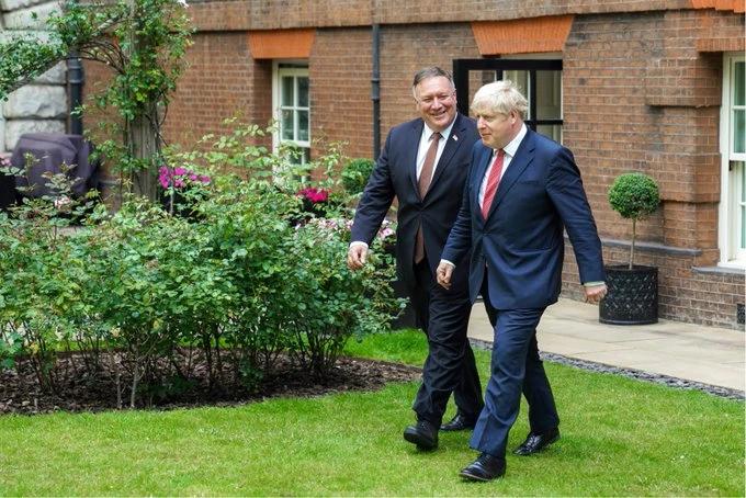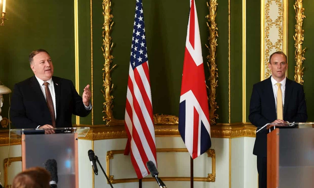 Phần Anh, một ngày trước cuộc họp báo với Ngoại trưởng Mỹ Pompeo, Ngoại trưởng Anh Raab thông báo Anh sẽ kéo dài cấm vận vũ khí với Trung Quốc và ngừng thực hiện hiệp ước dẫn độ với Hong Kong – thuộc địa cũ của Anh.