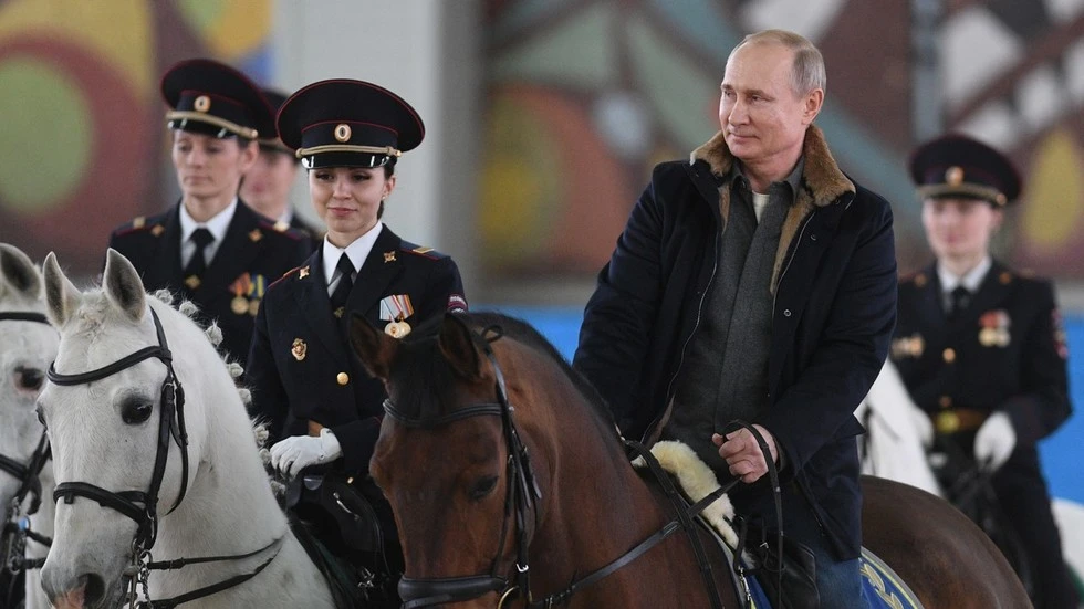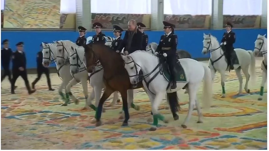 Ngày 7-3, trong đoạn phim được phát trên toàn nước Nga, Tổng thống Vladimir Putin được nhìn thấy đã cưỡi ngựa và đi vài vòng nhỏ cùng các nữ cảnh sát ở thủ đô Moscow.