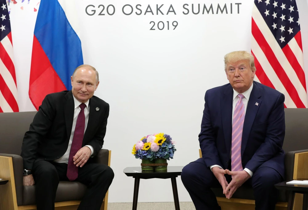 Tổng thống Nga Vladimir Putin (trái) và người đồng cấp Mỹ Donald Trump tại Hội nghị thượng đỉnh G20 ở Nhật Bản cuối tháng 6. Ảnh: SPUTNIK