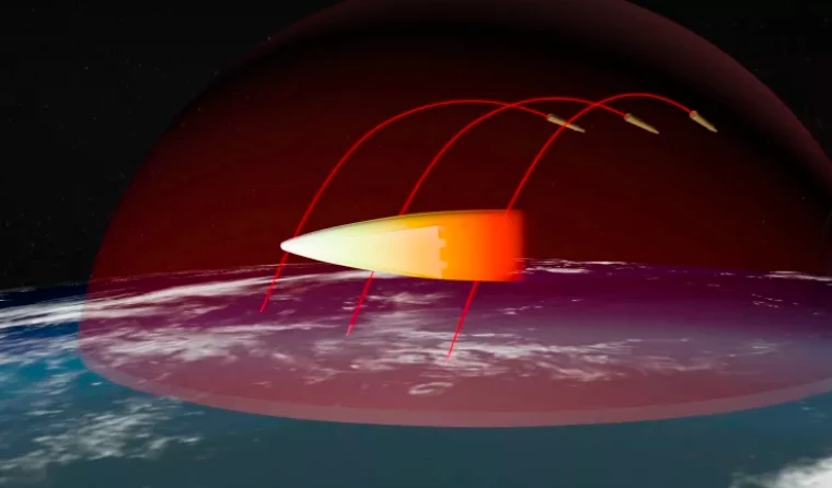 Một bản mô phỏng bằng máy tính tên lửa siêu thanh Avangard trên đường bay tới mục tiêu. Ảnh: AP