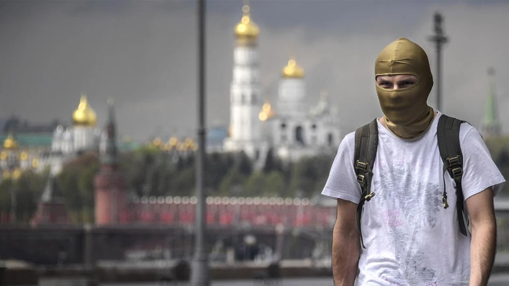 Một người dân Nga che chắn kỹ khi ra đường. Ảnh: MOSCOW TIMES