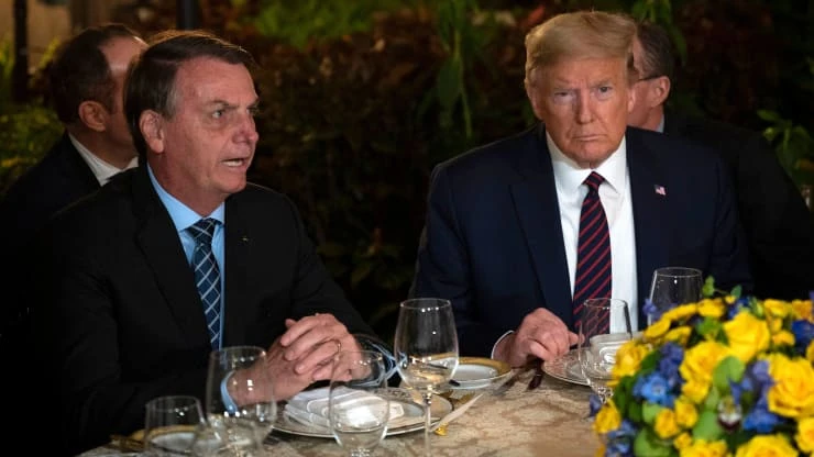 Tổng thống Mỹ Donald Trump tại bữa ăn trưa với Tổng thống Brazil Jair Bolsonaro tại khu nghỉ dưỡng Mar-a-Lago ở bang Floria hồi tháng 3. Ảnh: Jim Watson/ AFP/ Getty Images