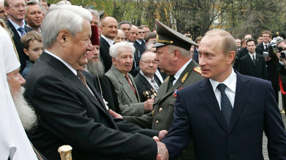 Ông Boris Yeltsin (trái) và Tổng thống Nga Vladimir Putin. Ảnh: SPUTNIK