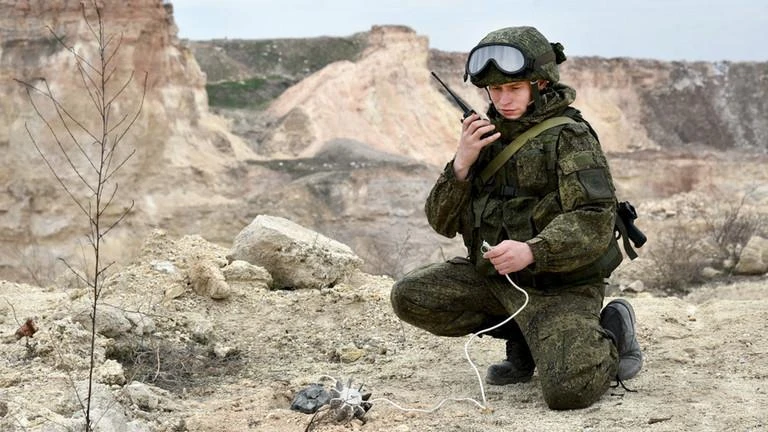 Một kỹ sư quân sự của Nga trong quá trình rà phá bom mìn ở Aleppo, Syria. Ảnh: SPUTNIK