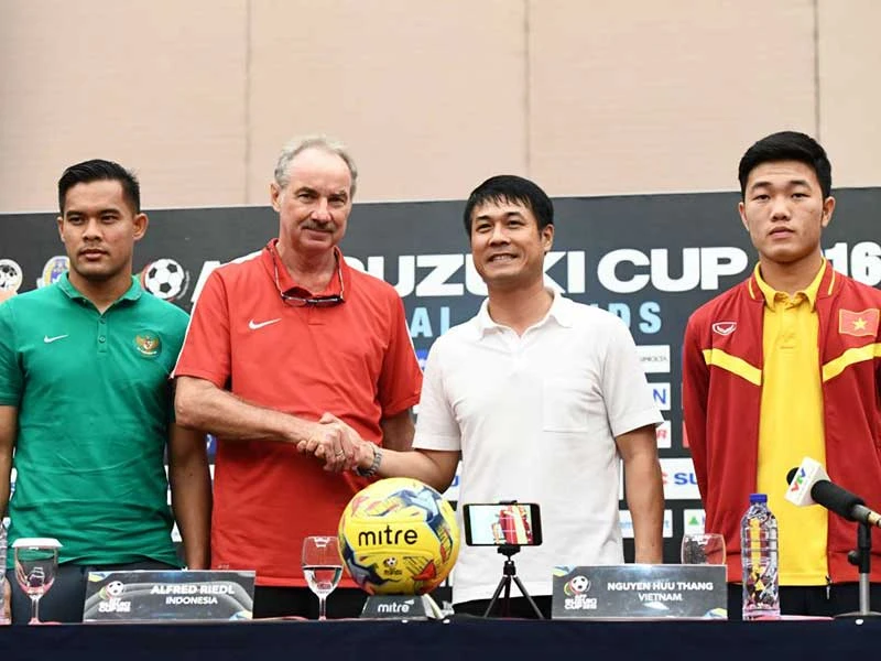 Dù bắt tay học trò cũ nhưng ông Riedl vẫn có nhiều chiêu trò, trong đó có cả đòn tâm lý gây sức ép ngược với HLV Hữu Thắng và cầu thủ Việt Nam. Ảnh: AFF NEWS