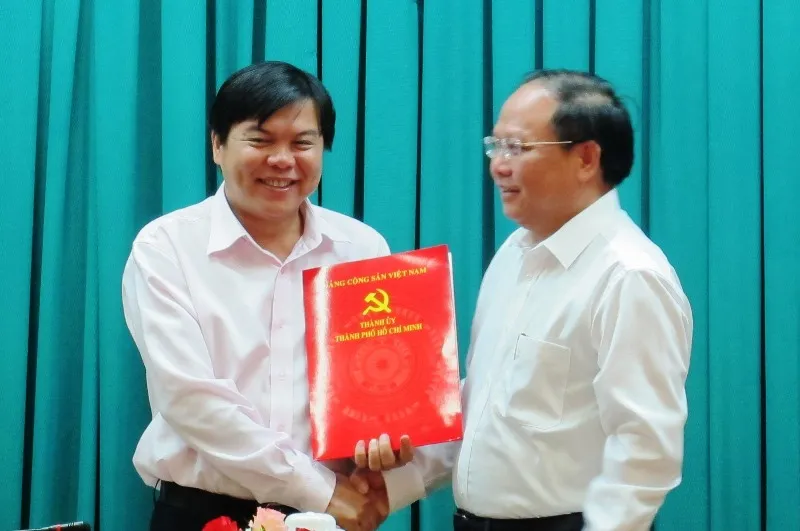 Phó Bí thư Thường trực Thành ủy Tất Thành Cang trao quyết định cho ông Tăng Hữu Phong (bên trái). Ảnh: ÁI CHÂN
