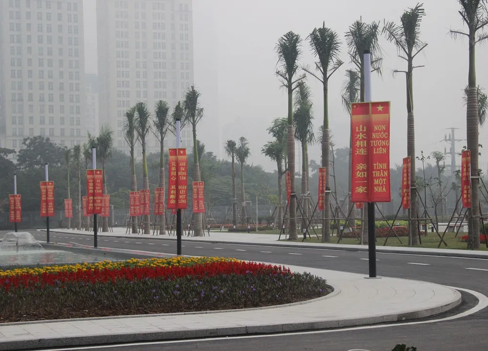 Phía bên ngoài, các công nhân tất bật với những công đoạn cuối cùng để chuẩn bị cho lễ khánh thành. An ninh tại đây cũng được siết chặt, việc ra vào bị kiểm soát chặt chẽ.