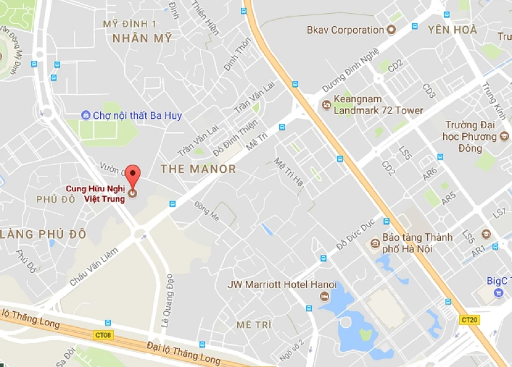 Dự án xây dựng Cung hữu nghị Việt-Trung nằm tại số 188 đường Lê Quang Đạo, Nam Từ Liêm, Hà Nội.
