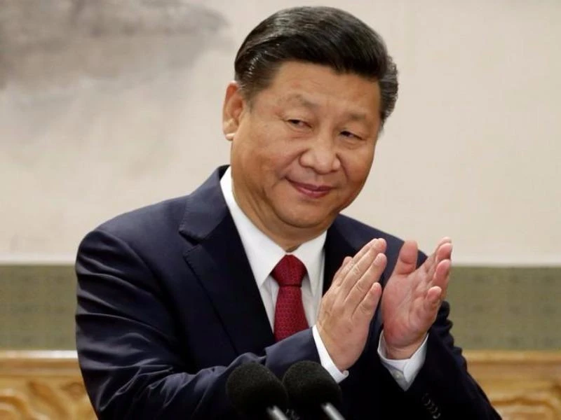 Chủ tịch Trung Quốc Tập Cận Bình vỗ tay khi cùng các thành viên trong Ban Thường vụ Bộ Chính trị khóa mới gặp báo giới ở Bắc Kinh hôm 25-10. Ảnh: REUTERS