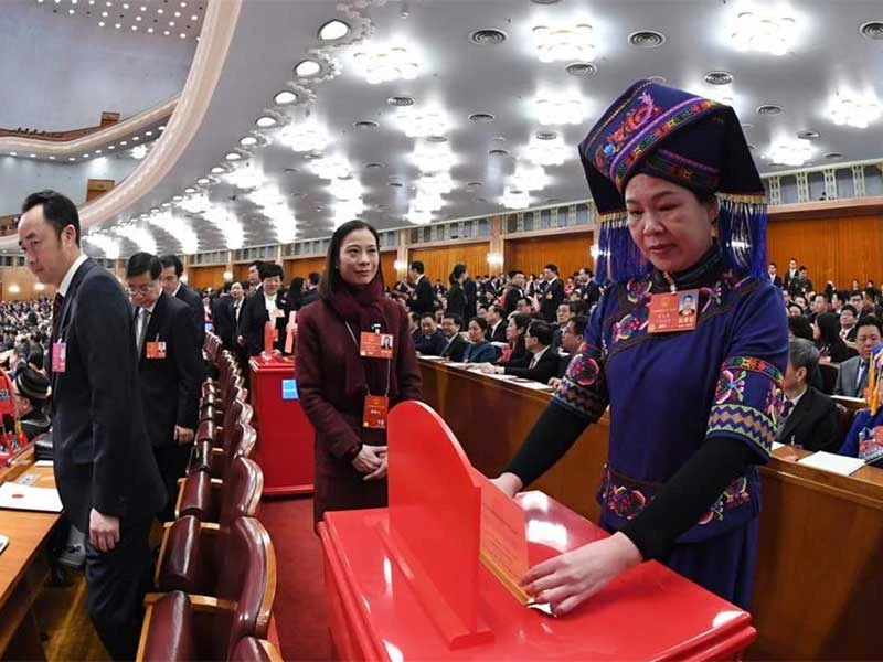 Một đại biểu Quốc hội TQ tham dự phiên bỏ phiếu ngày 11-3. Ảnh: TÂN HOA XÃ