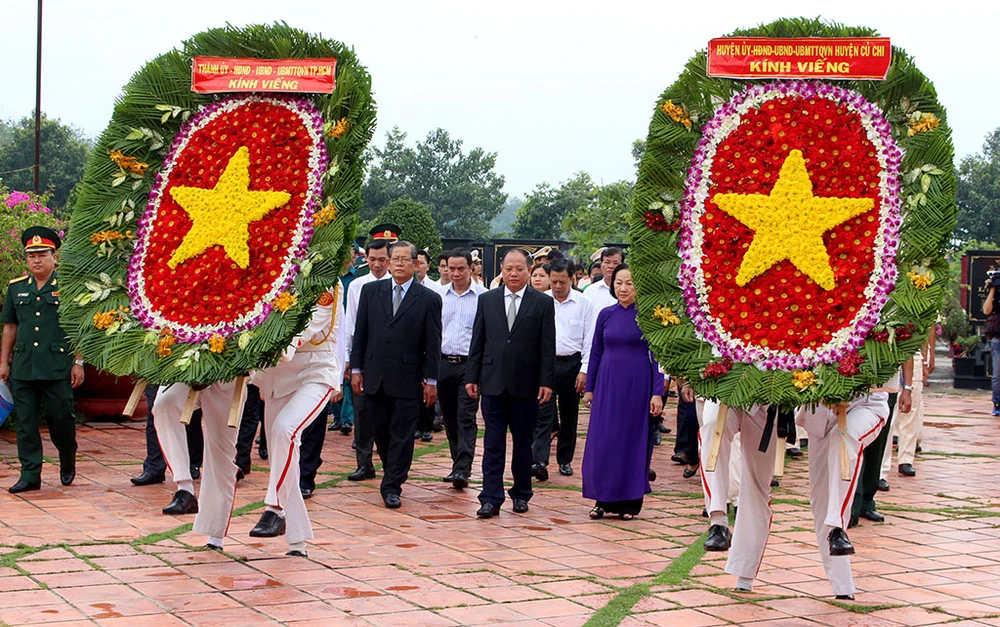 Đoàn do Phó Bí thư Thường trực Thành ủy TP.HCM Tất Thành Cang dẫn đầu cũng đến viếng tại Nghĩa trang liệt sĩ huyện Củ Chi (xã An Nhơn Tây), Nghĩa trang Chính sách TP (xã Phú Hòa Đông) và Nhà tưởng niệm Bà mẹ Việt Nam anh hùng - Anh hùng Lực lượng vũ trang nhân dân Nguyễn Thị Rành (xã Phước Hiệp).