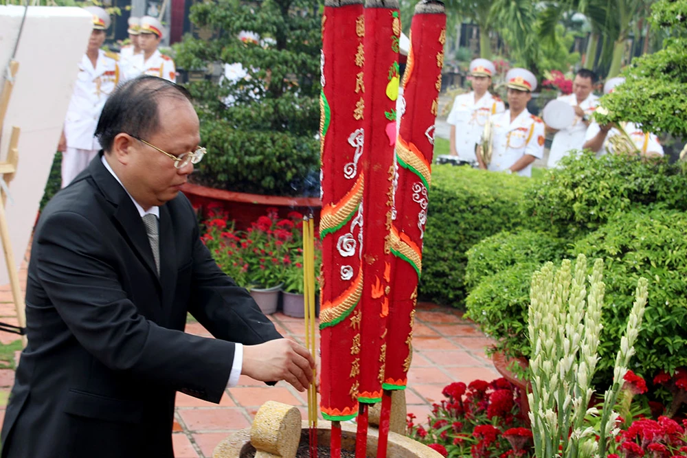 Phó Bí thư Thường trực Thành ủy Tất Thành Cang dâng hương tưởng niệm các anh hùng liệt sĩ.