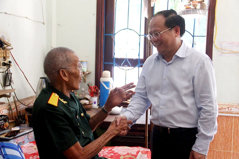 Ông cũng đến tận nhà thương binh Trần Khắc Hải để hỏi han. Ảnh: LÊ THOA