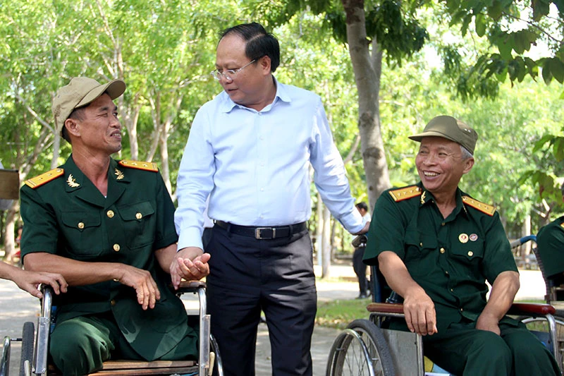 Tại đây, ông Tất Thành Cang bày tỏ sự xúc động khi gặp gỡ, trò chuyện với các thương bệnh binh đang được nuôi dưỡng và điều trị ở Trung tâm Điều dưỡng thương binh và người có công Long Đất.