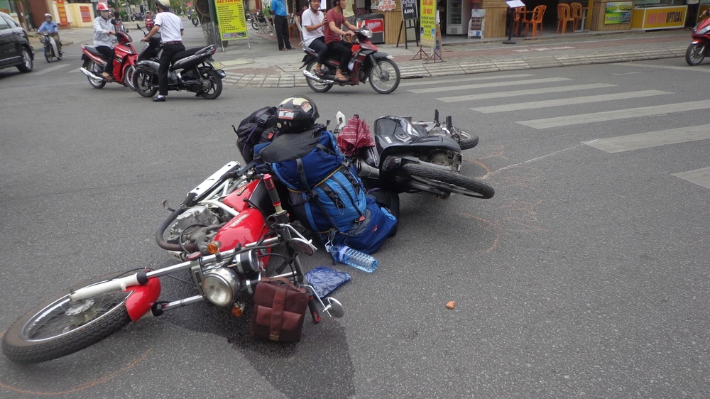 Thông tin ban đầu, vào thời điểm trên, xe máy biển số xanh 92B1 - 0298 do một người đàn ông nước ngoài (chưa rõ danh tính) điều khiển đã tông vào xe máy 75K1 - 5346 do một phụ nữ Việt (chưa rõ danh tính) điều khiển. Vụ tai nạn khiến người phụ nữ bị thương nặng. Nhiều người dân đã kịp thời đưa người phụ nữ vào bệnh viện cấp cứu, còn người nước ngoài chỉ bị xây xát nhẹ.