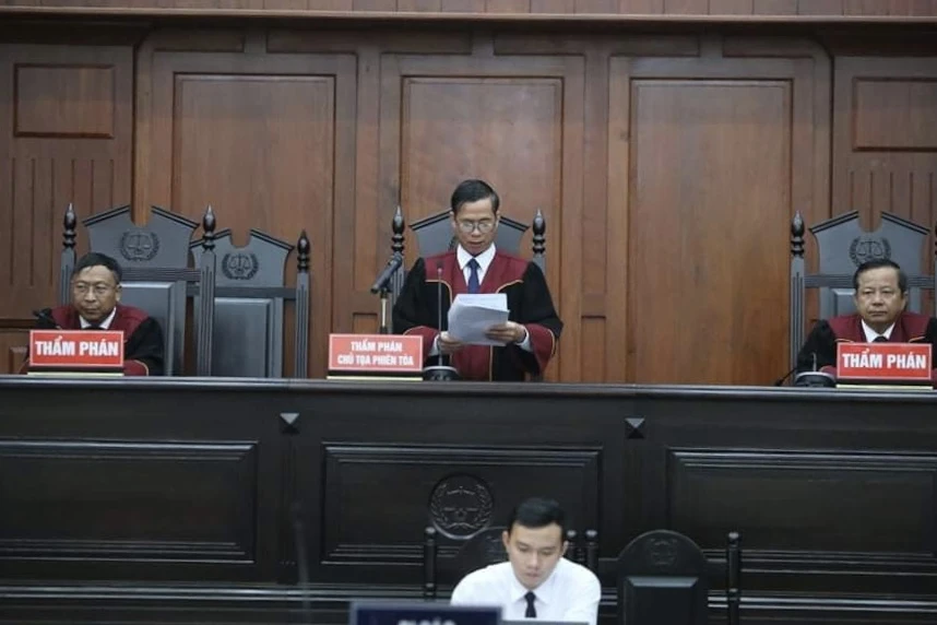 Chủ tọa phiên xử công bố toàn văn bản án. Ảnh: H.Y