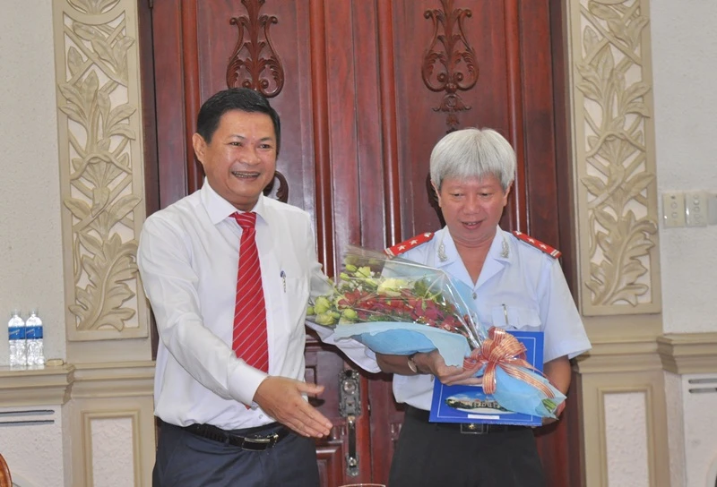 Phó Chủ tịch UBND TP.HCM Trần Vĩnh Tuyến trao quyết định bổ nhiệm cho ông Lâm Ngọc Bửu. Ảnh: TÁ LÂM