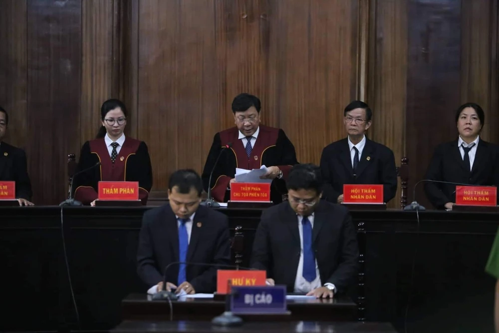 HĐXX đang đọc toàn văn bản án sau khi nghị án. Ảnh: H.Y
