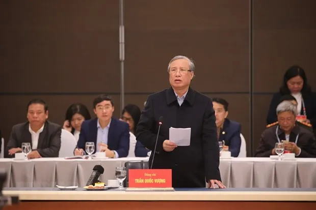 Ông Trần Quốc Vượng, Ủy viên Bộ Chính trị, Thường trực Ban Bí thư chủ trì họp rút kinh nghiệm công tác chuẩn bị. Ảnh: TTXVN