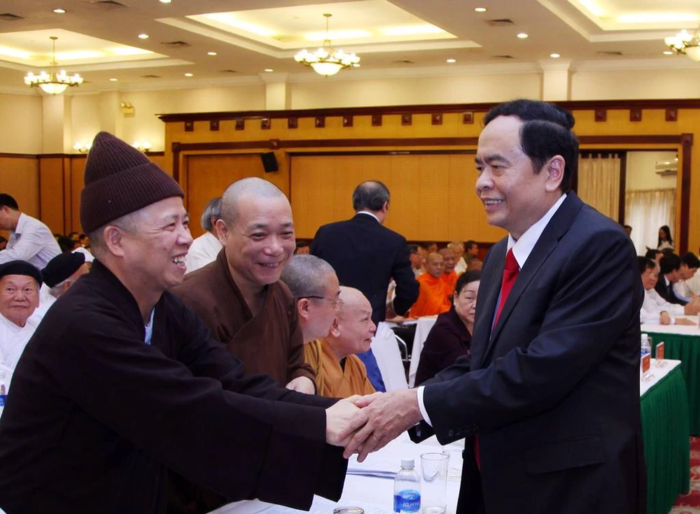Ông Trần Thanh Mẫn (phải) được Bộ Chính trị cử để hội nghị hiệp thương giữ chức chủ tịch UB Trung ương MTTQ Việt Nam.
