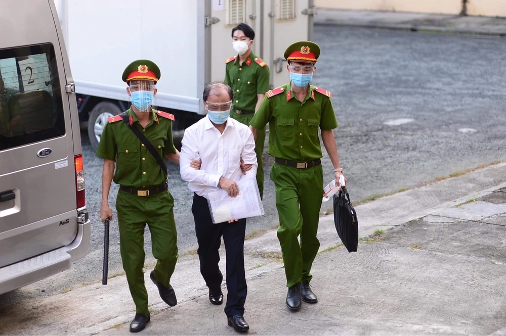 Ông Lê Tấn Hùng được dẫn giải đến toà. Ảnh: H.YẾN