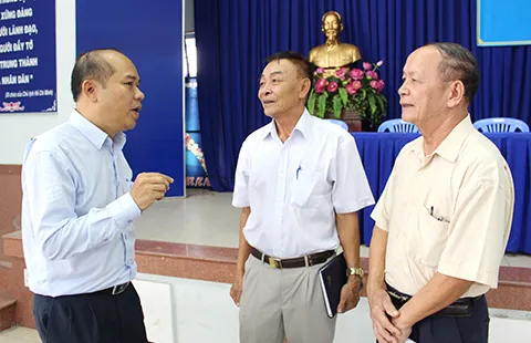 Ứng cử viên Trần Văn Bảy đang trao đổi với cử tri quận Tân Bình. Ảnh: LÊ THOA