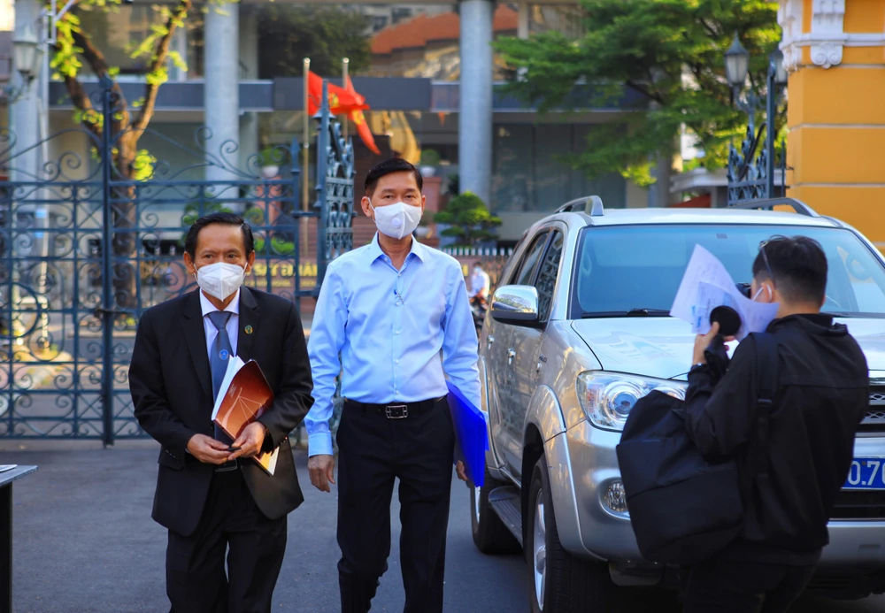 Ông Trần Vĩnh Tuyến và luật sư đến toà. Ảnh: N.NHI
