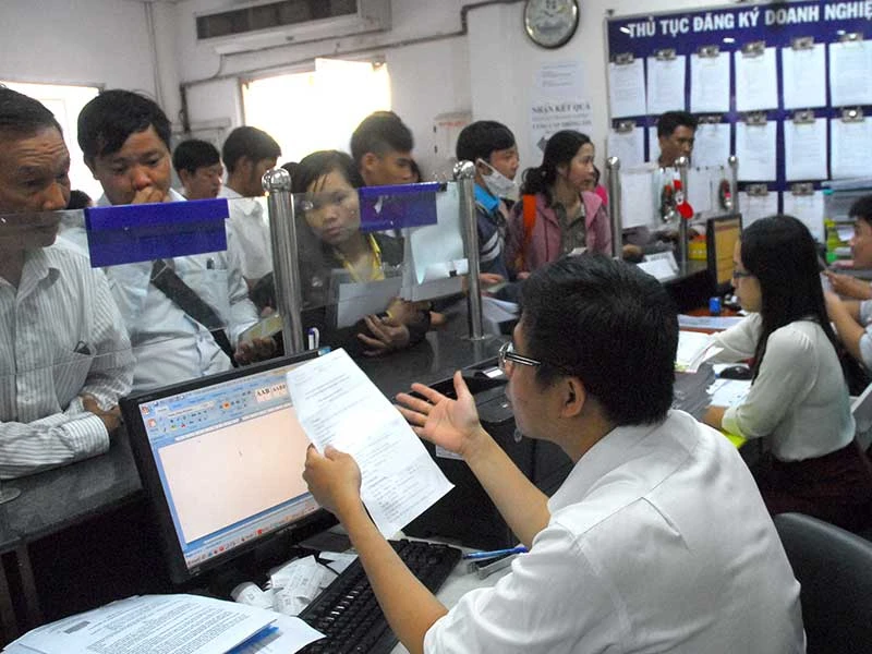 TP. HCM luôn dẫn đầu cả nước về khối lượng hồ sơ đăng ký doanh nghiệp tiếp nhận.Trong ảnh: Làm thủ tục đăng ký kinh doanh tại Sở KH&ĐT TP.HCM. Ảnh: HTD