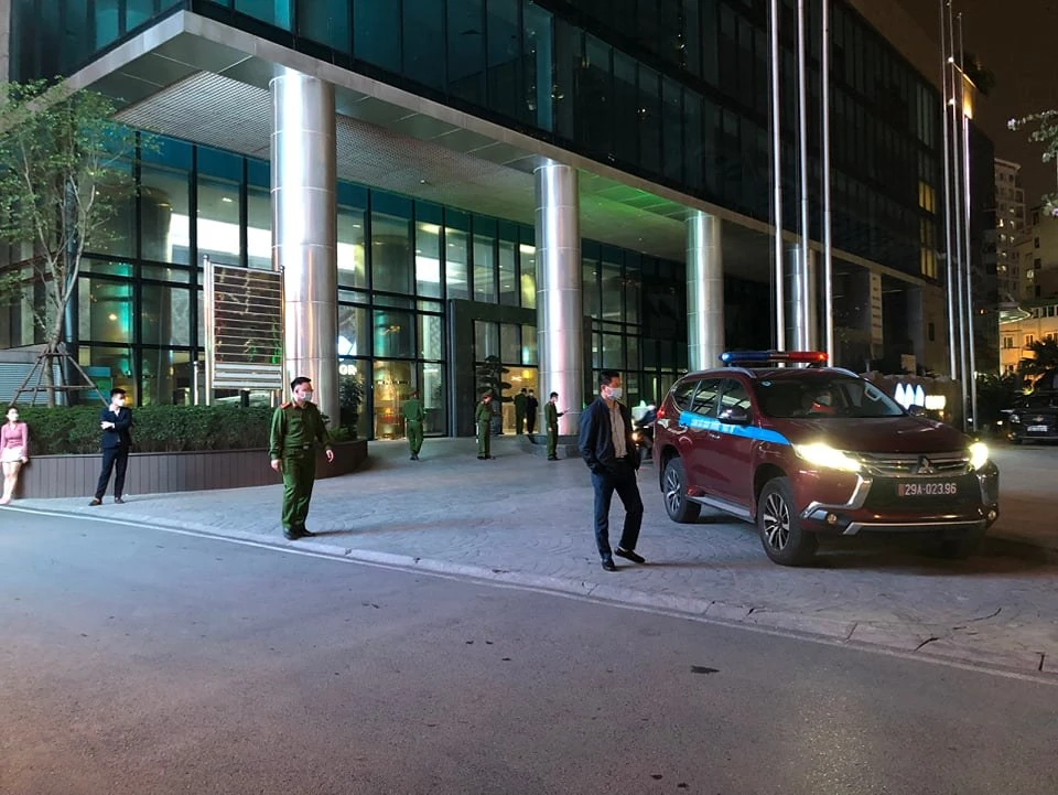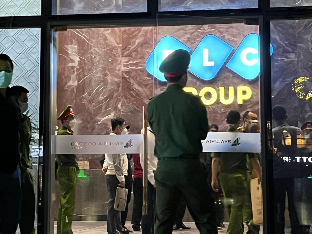 Lực lượng chức năng có mặt tại trụ sở Công ty FLC tại Hà Nội. Ảnh: PHI HÙNG