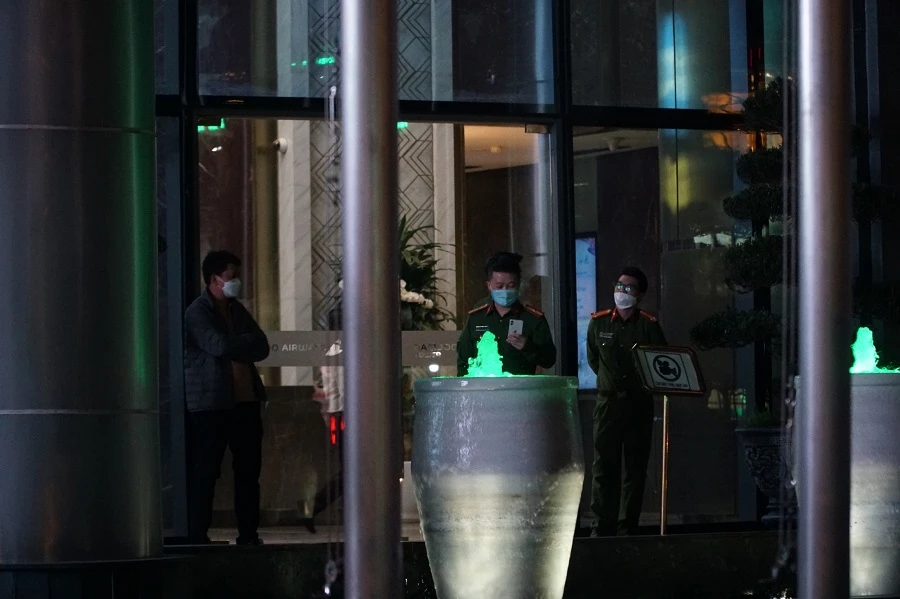 Tối 29-3, lực lượng công an có mặt tại tòa nhà FLC, địa chỉ trên đường Cầu Giấy, Hà Nội. Ảnh: PHI HÙNG