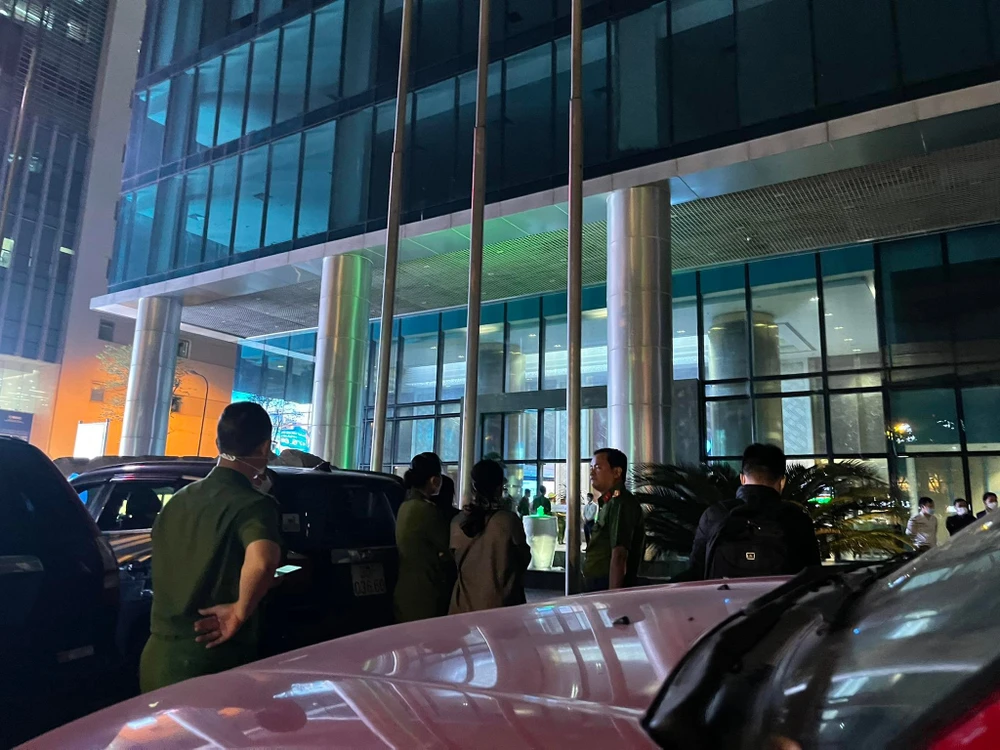 Công an khám xét tại Tòa nhà FLC 265 Cầu Giấy, Hà Nội. Ảnh: MINH TRÚC