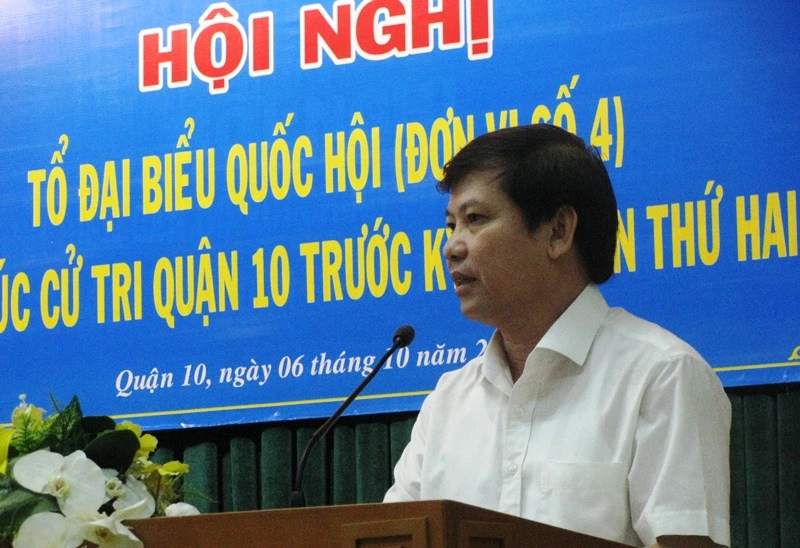 Viện trưởng VKSND Tối cao Lê Minh Trí trả lời cử tri quận 10 sáng nay. Ảnh: TÁ LÂM
