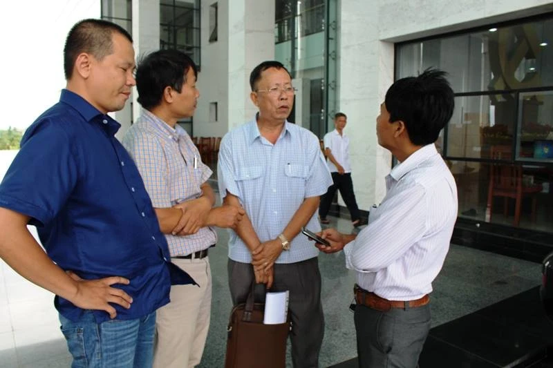 Bí thư tỉnh ủy Hậu Giang Trần Công Chánh (thứ hai từ phải qua) trả lời phóng viên báo Pháp Luật TP.HCM.