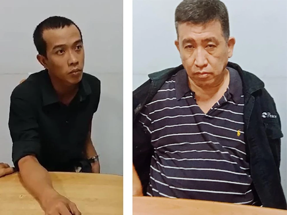 Tuấn Anh (bên trái) cùng Chu tại cơ quan điều tra. Ảnh: CA