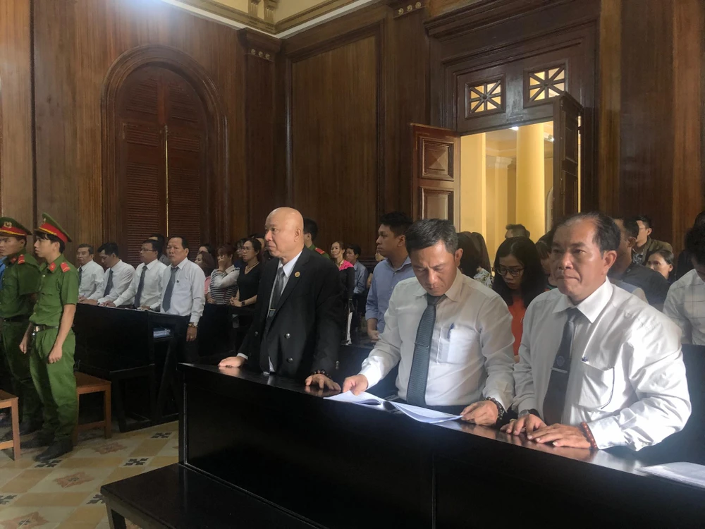 Các bị cáo tại phiên xử. Ảnh: HOÀNG YẾN