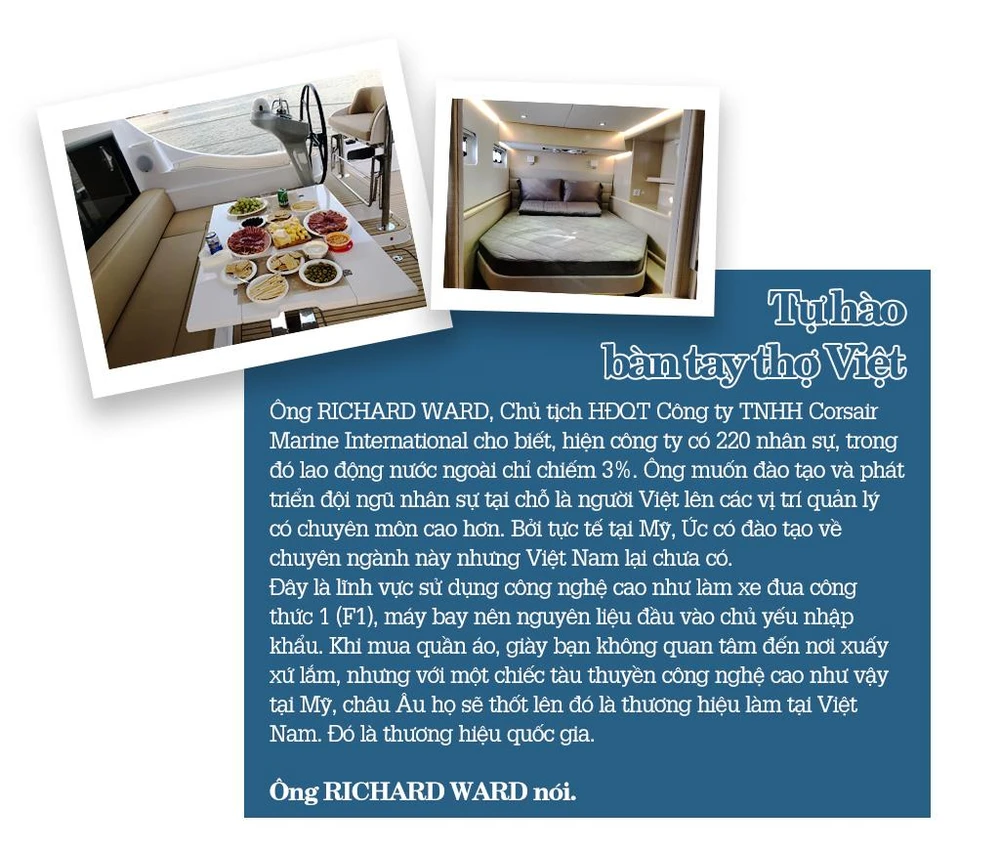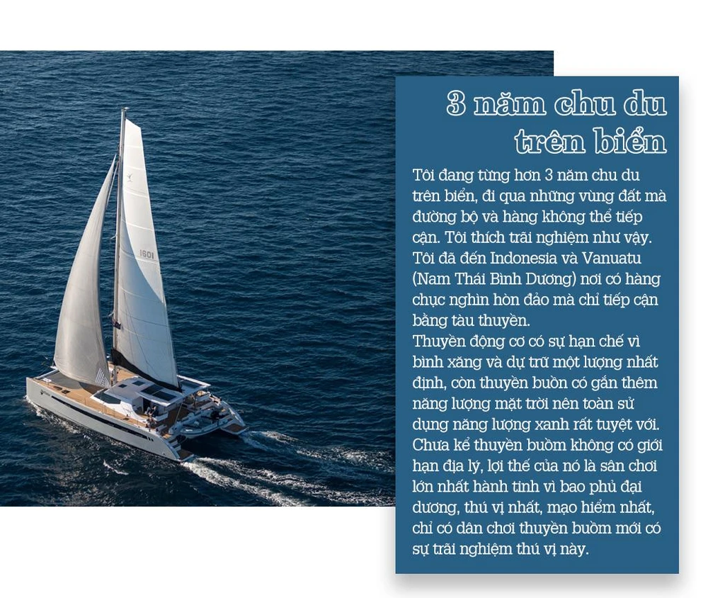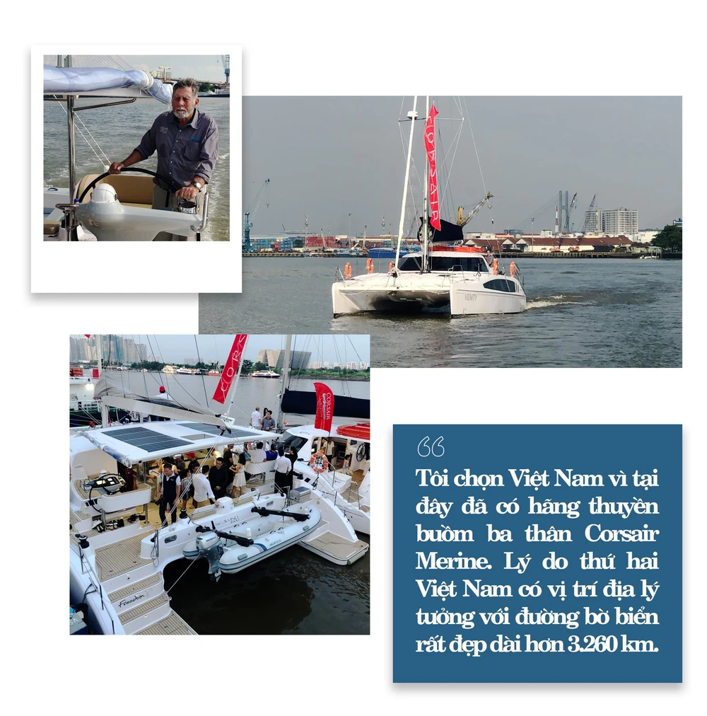 + Tôi chọn Việt Nam vì tại đây đã có hãng thuyền buồm ba thân Corsair Merine. Lý do thứ hai là Việt Nam có vị trí địa lý tưởng với đường bờ biển rất đẹp dài hơn 3.260 km.