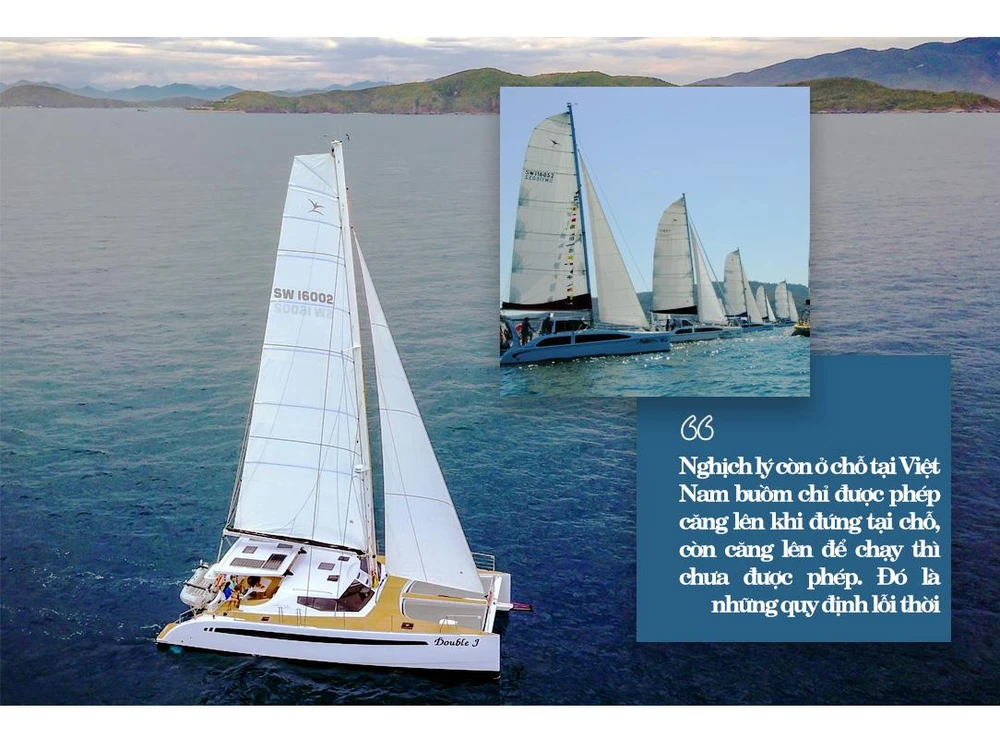 Nghịch lý còn ở chỗ tại Việt Nam buồm chỉ được phép căng lên khi đứng tại chỗ, còn căng lên để chạy thì chưa được phép. Đó là những quy định lỗi thời. Hiện điều này vẫn chưa có thay đổi. Thậm chí công ty chúng tôi đã ký thỏa thuận cung cấp 10 chiếc thuyền buồm cho một resort nhưng cánh buồm chỉ để trang trí cho đẹp con thuyền chứ chưa được căng lên sử dụng như hoạt động thể thao trên biển.