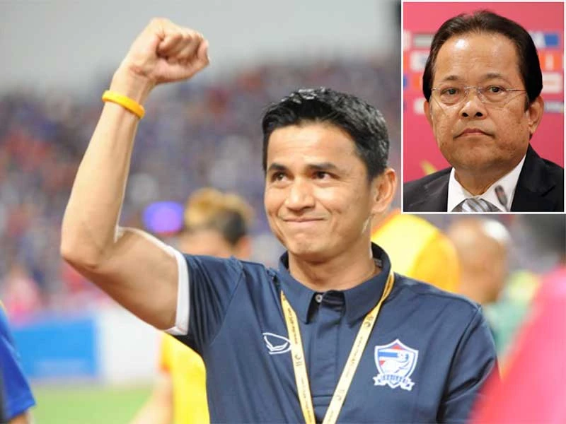 Ông Worawi (ảnh nhỏ) tuyên bố trở lại tái thiết bóng đá Thái Lan và đưa Kiatisak thay thế Nishino. Ảnh: NGỌC DUNG - FAT