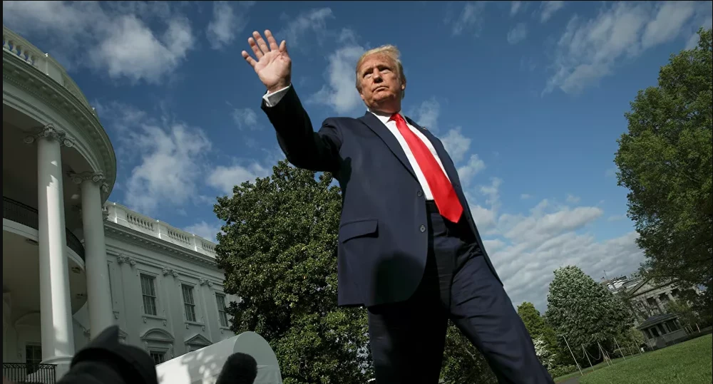 Tổng thống Trump vẫy chào mọi người tại Nhà Trắng hôm 1-5. Ảnh: REUTERS