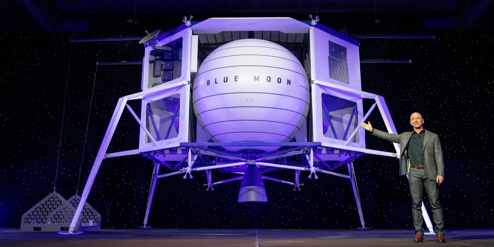 Các công ty tư nhân cũng đang nhảy vào cuộc đua lên Mặt Trăng. Hồi tháng trước, tỷ phú Jeff Bezos đã tiết lộ một mô hình tàu đổ bộ Mặt Trăng đang được xây dựng bởi công ty tên lửa Blue Origin của ông.