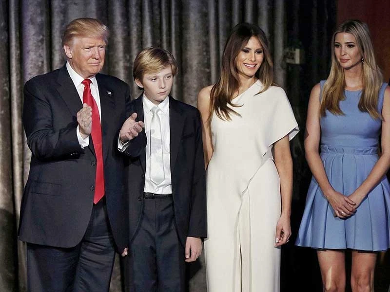 Ông Donald Trump cùng gia đình mừng chiến thắng ở New York. Ảnh: REUTERS