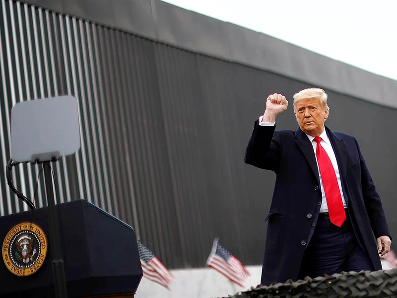 Tổng thống Donald Trump thị sát bức tường biên giới với Mexico, một cam kết tranh cử của ông, ở bang Texas (Mỹ) ngày 12-1. Ảnh: REUTERS
